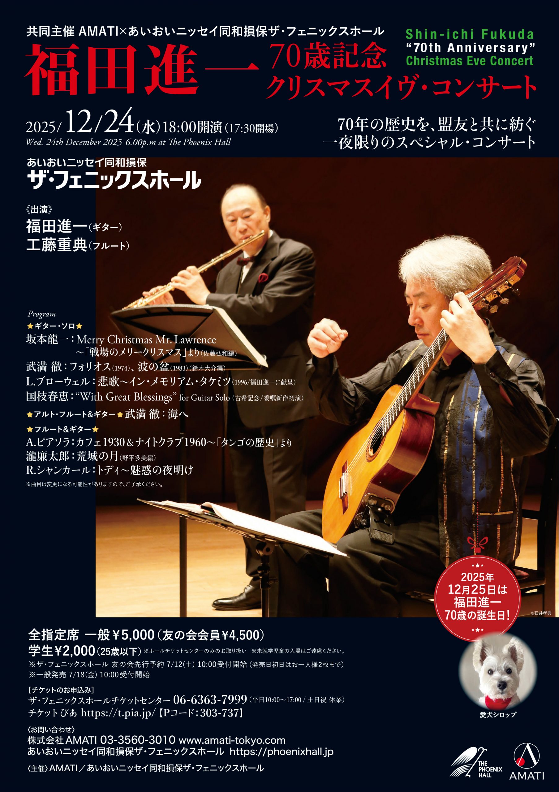 問い合わせ先 | 株式会社AMATI 03-3560-3010 ザ・フェニックスホール チケットセンター 06-6363-7999 (平日10:00~17:00 / 土日祝 休業) |